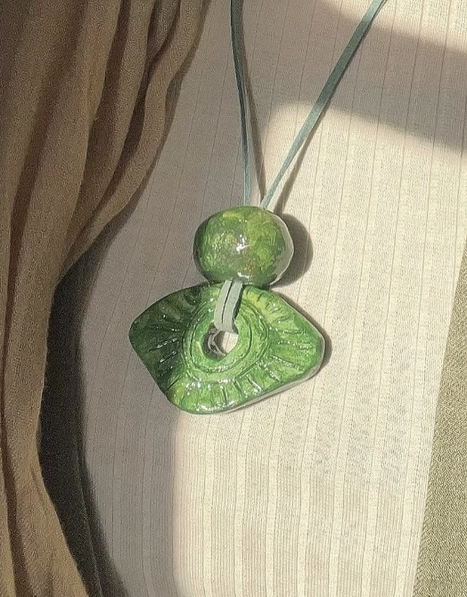 Handcrafted Green Ceramic “Evil Eye” Necklace