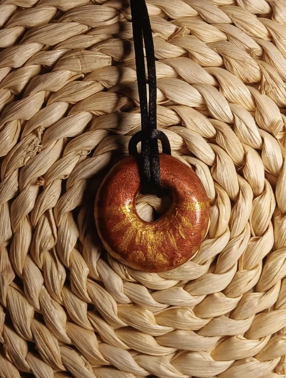 Earthy Donut Pendant: Sienna and Gold Swirls