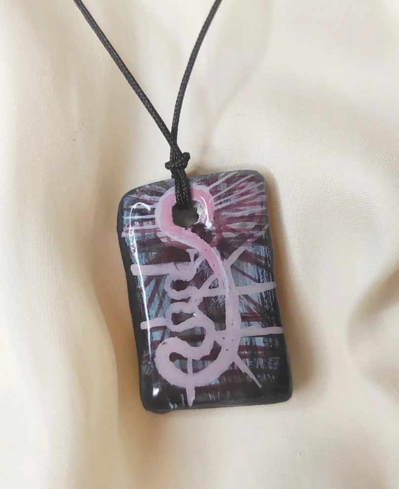 I think I found a solution for those plain outfits that need something. But here’s the thing, ya know, that extra pop of color or unique flair. I’m obsessed with this hand-painted rectangular pendant. It’s like a mini art piece. Forget basic jewelry – this is where it’s at. Seriously though, these artsy Clay Trinkets can bring so much life to an outfit.