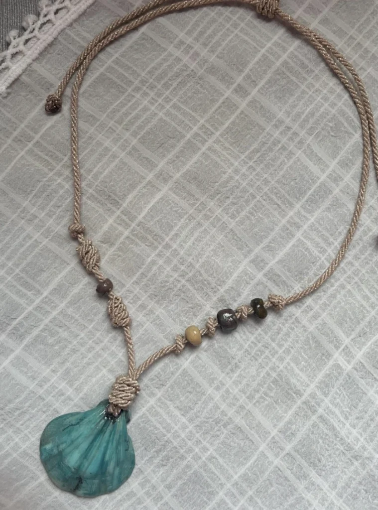 Turquoise Shell Ceramic Necklace with Knotted Cord