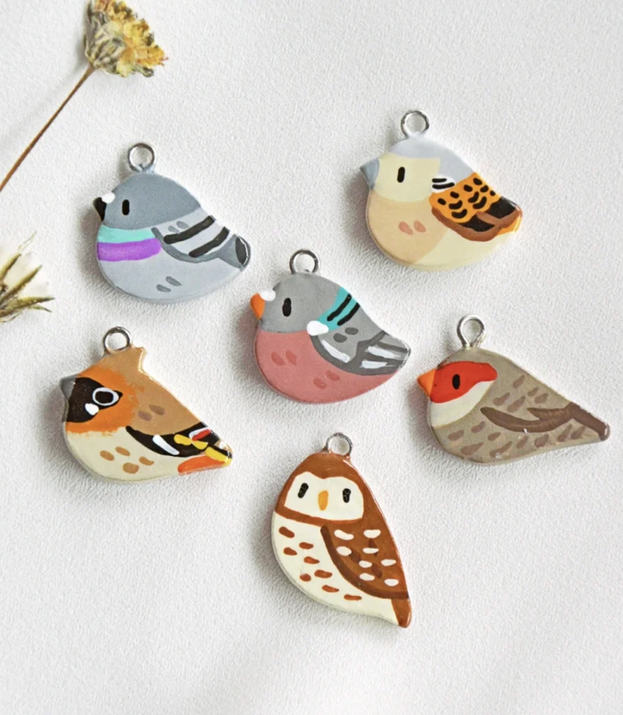 Adorable Hand-Painted Bird Polymer Clay Charms