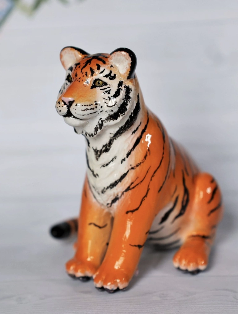 Hand-Painted Orange and Black Striped Clay Tiger