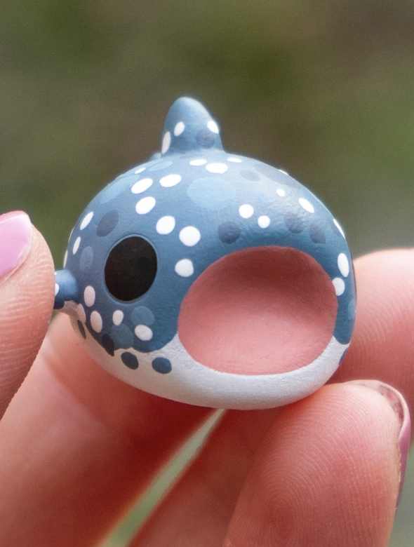 Miniature Blue Whale Shark Figurine with White Polka Dots