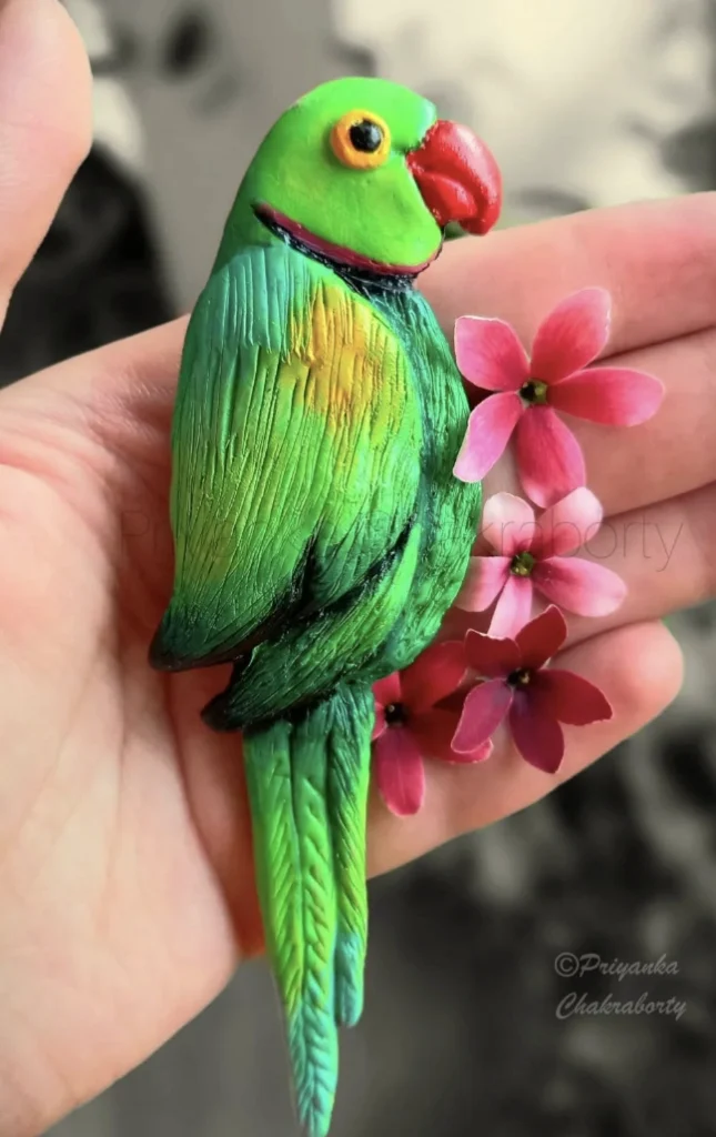 Look at this clay parrot. But here’s the thing, isn’t it just the cutest? and the little flowers next to it? stop it! the clay is so vibrant, and it reminds me of those nature-inspired aesthetics that are trending! i’ve been seeing people doing really cool stuff with polymer clay lately. Think I might look up some simple tutorials for some beginner-level, cute clay projects to try myself!