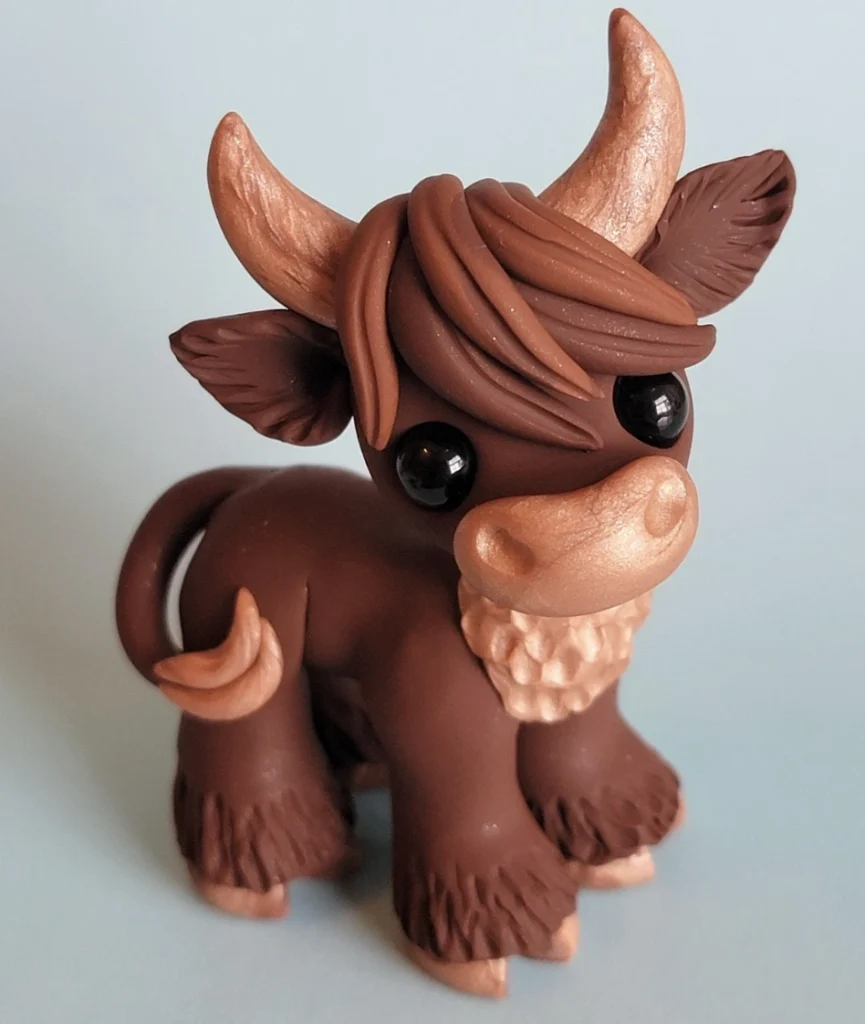 Highland Cow Polymer Clay Figurine with Metallic Accents