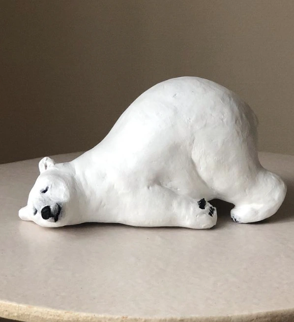 Resting White Polar Bear – Handmade Clay Figurine