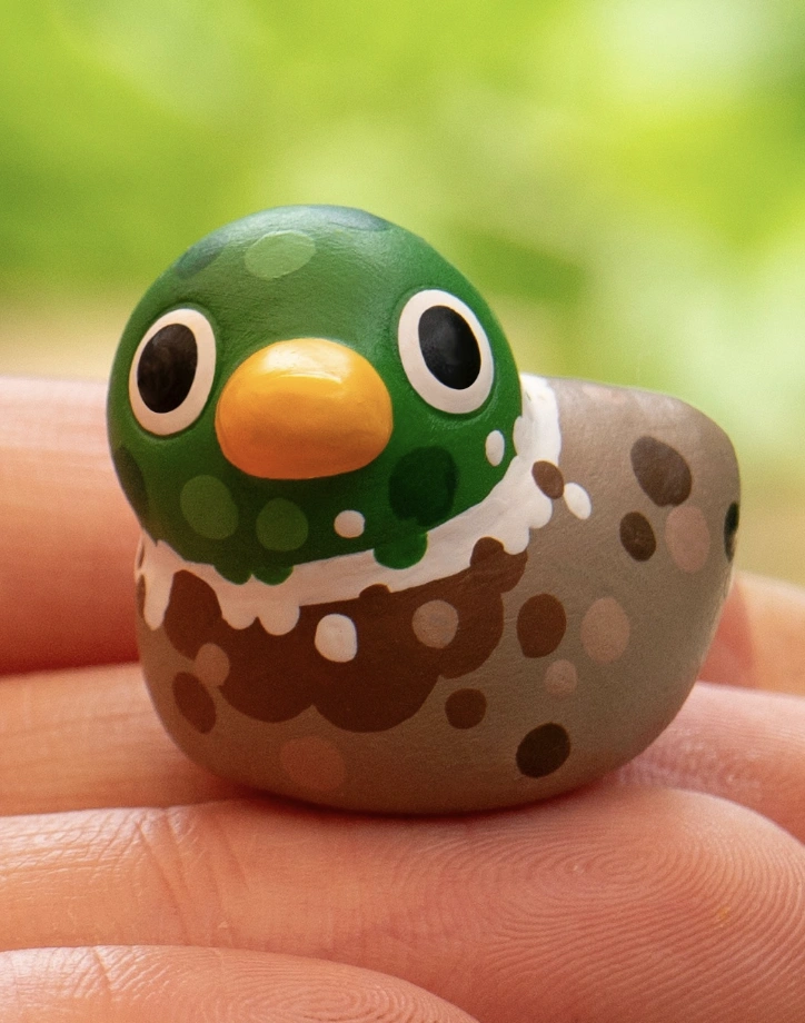 Round Green-Headed Duckling Figurine