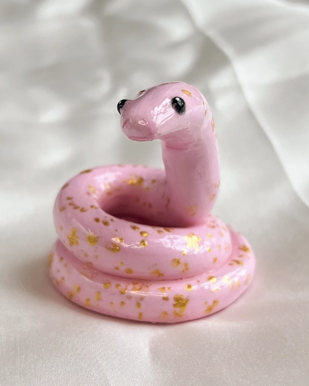 Pastel Pink Clay Snake with Golden Speckles