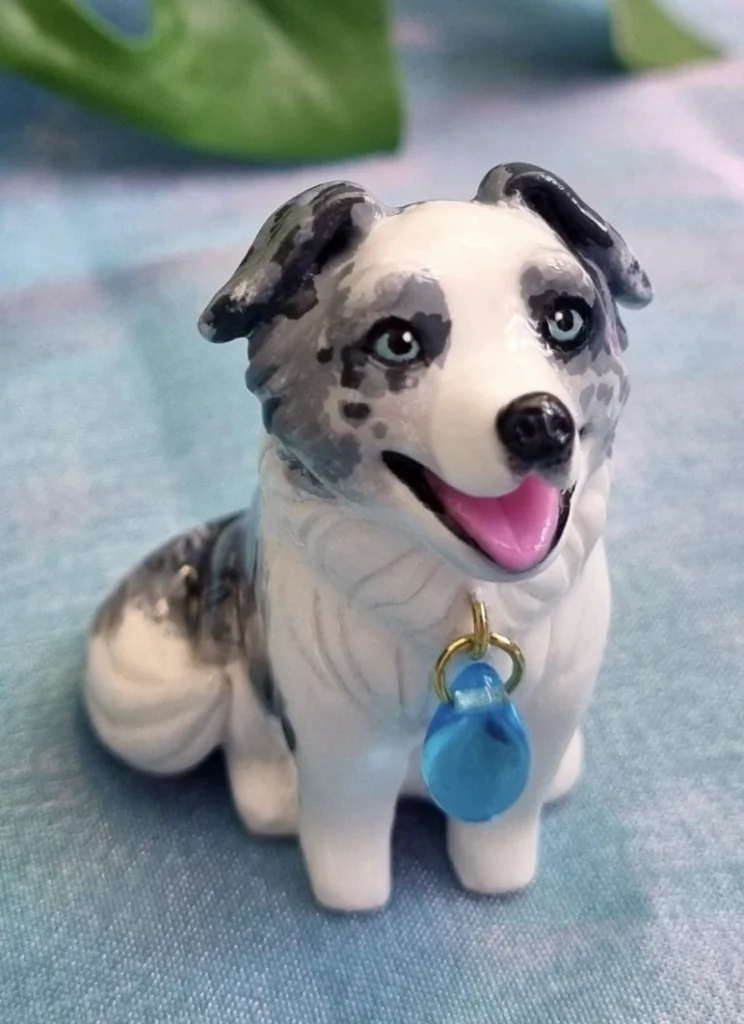 Border Collie Figurine with Blue Charm
