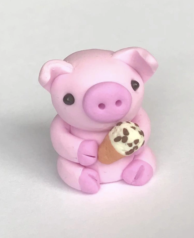 Tiny Clay Piglet Holding Chocolate Chip Ice Cream