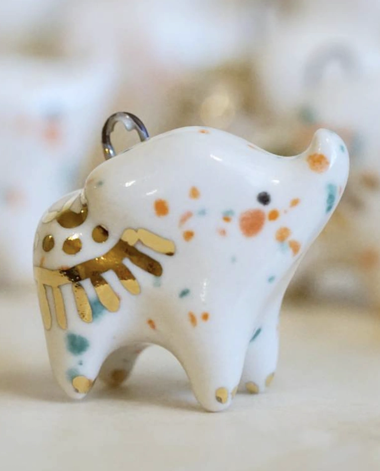 Miniature White Elephant Ornament with Gold Details