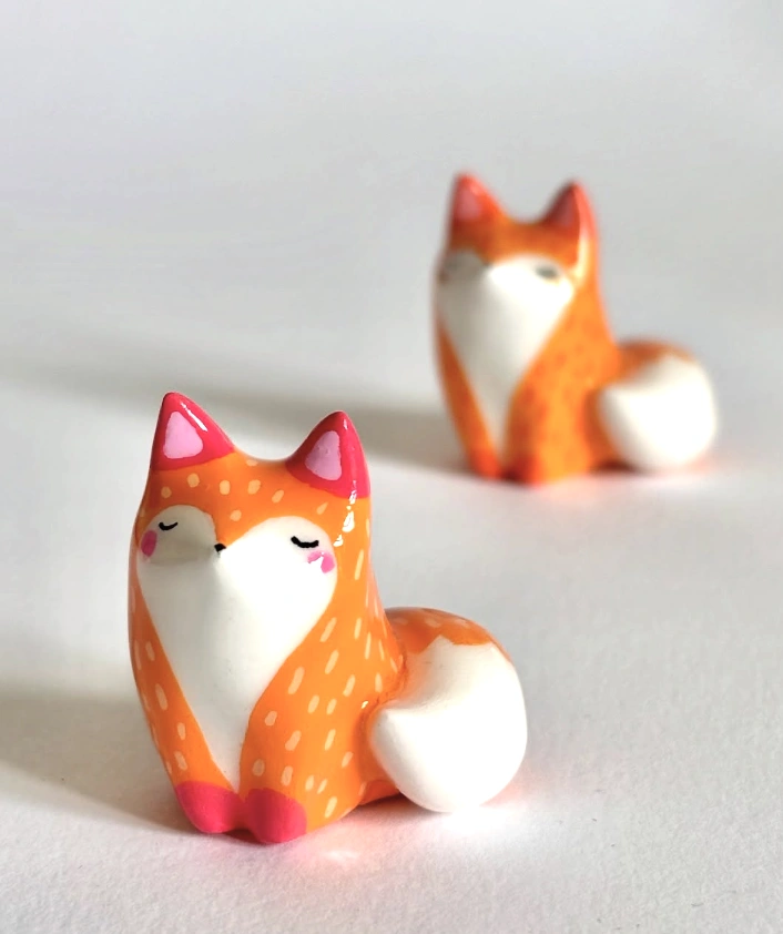 Okay, these little fox statues are surprisingly adorable. I’m obsessed with the tiny, hand-painted details. Look at the delicate eyelashes and the perfectly curled tails! My kid is super into arts and crafts, so maybe we’ll try making some of our own Small Clay Projects. I’m not sure ours will be this cute, but we can try!