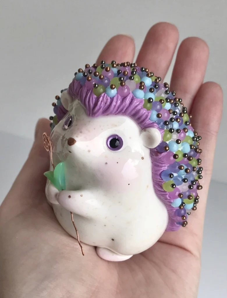 Pastel Hedgehog Sculpture with Seed Bead Accents