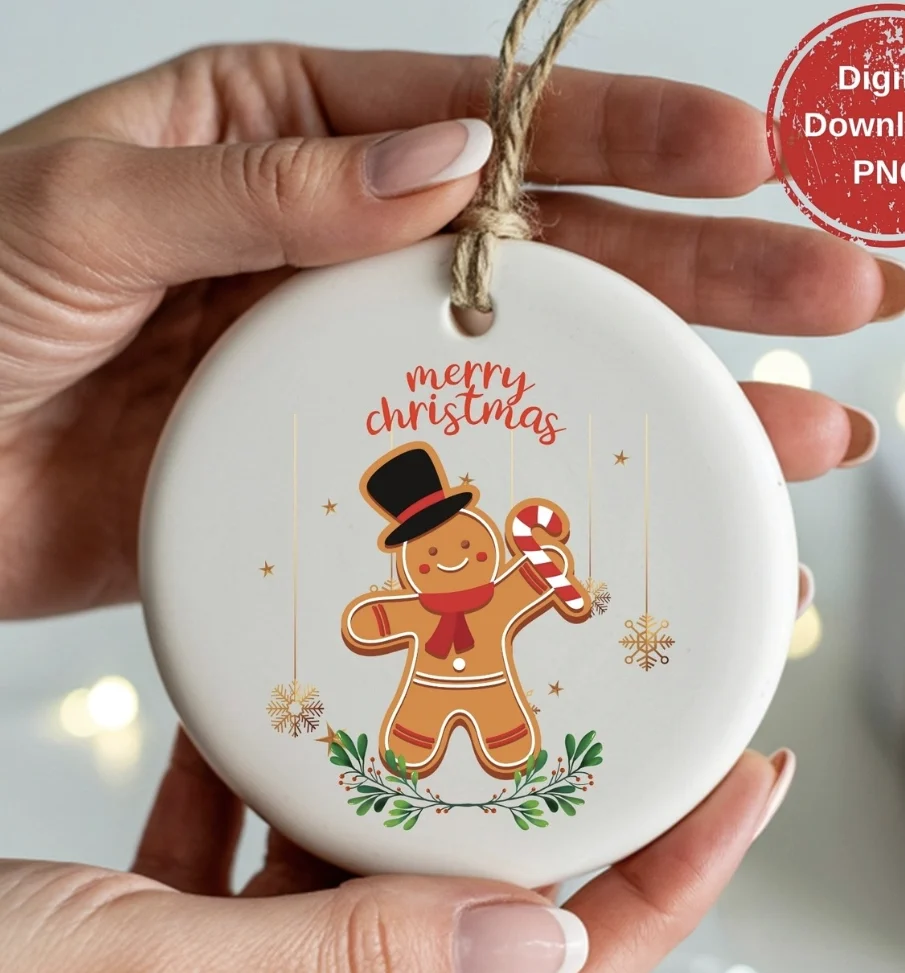 Personalized Ceramic Ornament with Gingerbread Man Design
