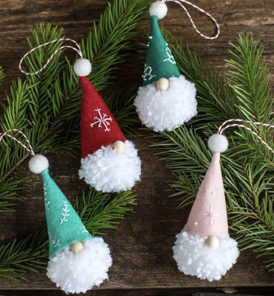Felt Gnome Ornaments: Red, Green, Teal, and Pink DIY Christmas Decorations