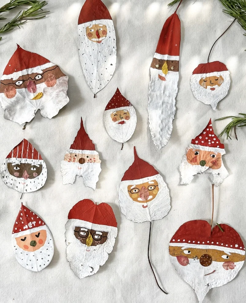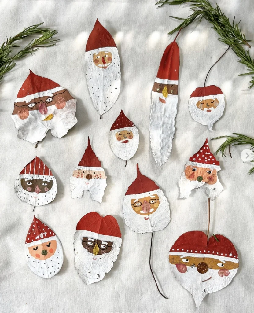 Painted Leaf Santa Ornaments: A Charming DIY Christmas Project