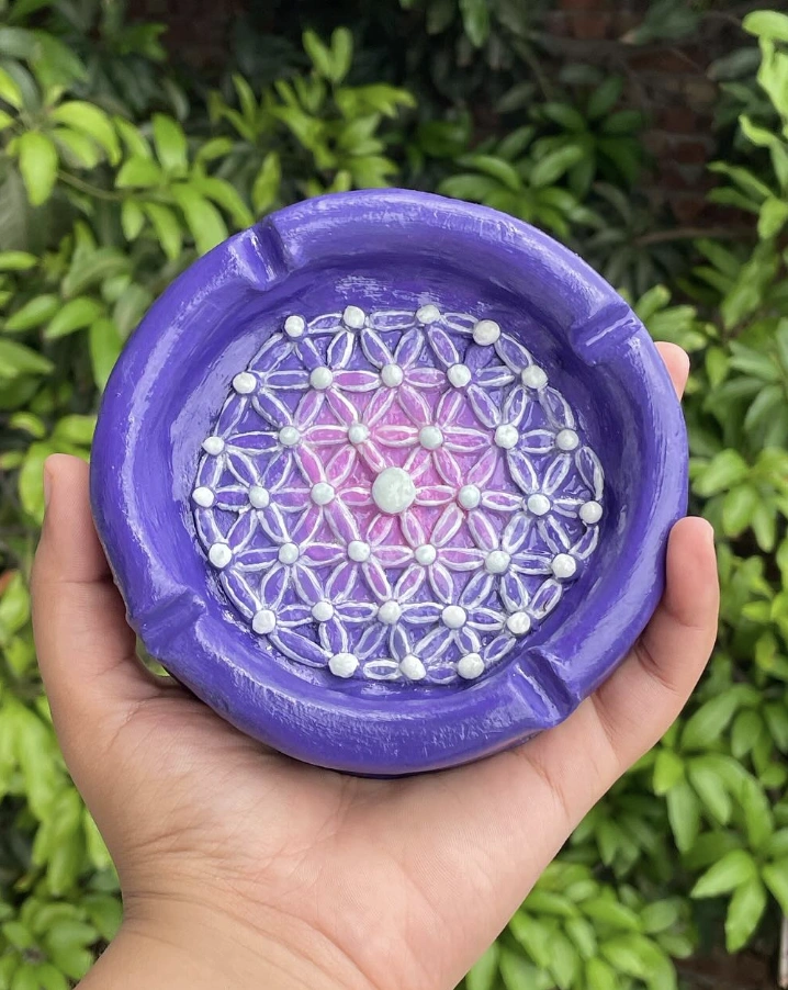 Forget those boring ceramic dishes. This ash tray isn’t just functional; it’s art. The lavender shade is a nice departure from the typical black or brown ones everyone has. The “Flower of Life” pattern elevates it, giving a spiritual vibe, plus that opal center? Divine. For those seeking Clay Ash Tray Ideas that double as decor, this is it. It’s a statement piece, trust me.
