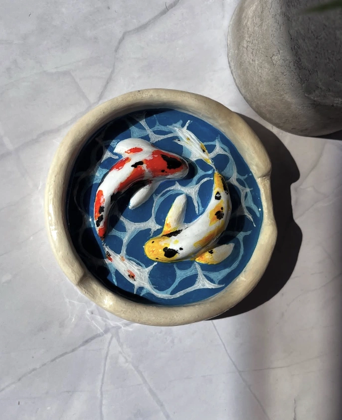 Handmade Koi Pond Air Dry Clay Ash Tray