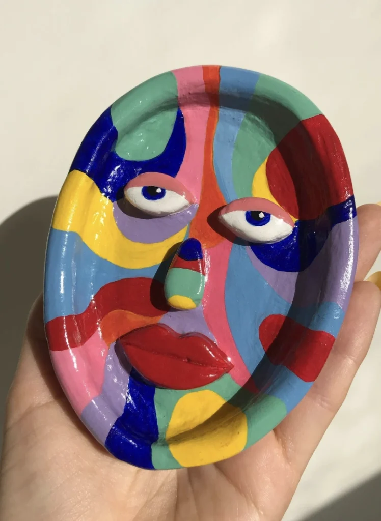 Groovy Face – Hand Painted Air Dry Clay Ash Tray