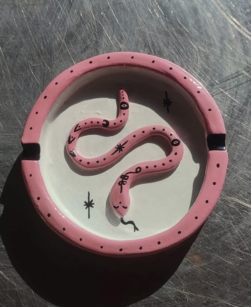 I’m all about functional decor. I needed something to hold my rings at the end of the day instead of just chucking them on my nightstand. The pink is such a vibe, and the little snake? Adorable. I was even searching “Clay Ashtray Ideas” online just to see if anyone else was making similar things. It’s quirky and practical, just how I like it!