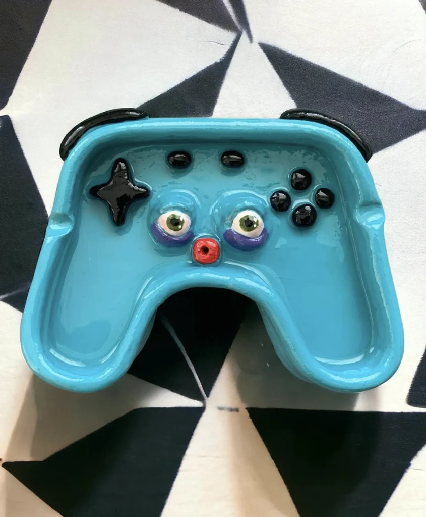 Whimsical Blue Game Controller Clay Ashtray