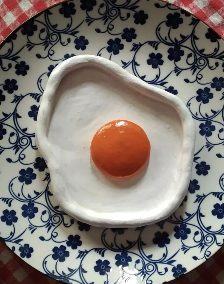 Handcrafted Fried Egg Air Dry Clay Ashtray on Vintage Plate