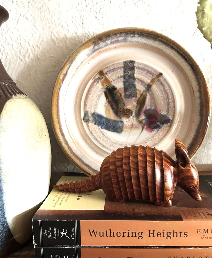 You see a lot of mass-produced ceramic pieces nowadays, but these are different. The vase and plate feature unique, almost rustic designs you won’t find just anywhere. I appreciate the handmade feel. Knowing these are Handmade Ceramics and not something from a big box store makes displaying them so much better. That armadillo is pretty cool too.