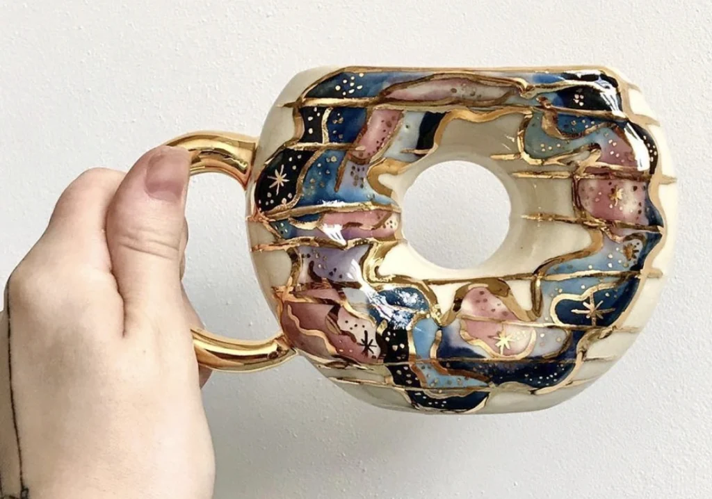 Doughnut Mug with Celestial Art & Gold Detailing