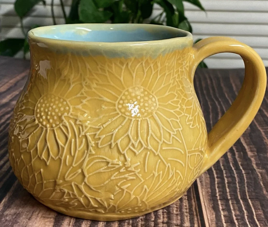 Sunflower Embossed Hand Painted Pottery Mug