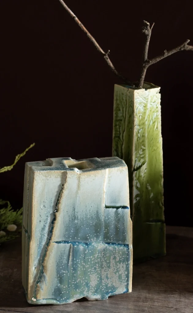 The texture reminds me of sea glass, you know? And the green one looks like tree bark – so cool. I’m getting major earthy vibes and i’ve been wanting some new decor, and after looking at functional pottery ideas, i think i might have to try making something similar, or at least find an artist who does this style. Perfect for some twigs or flowers.