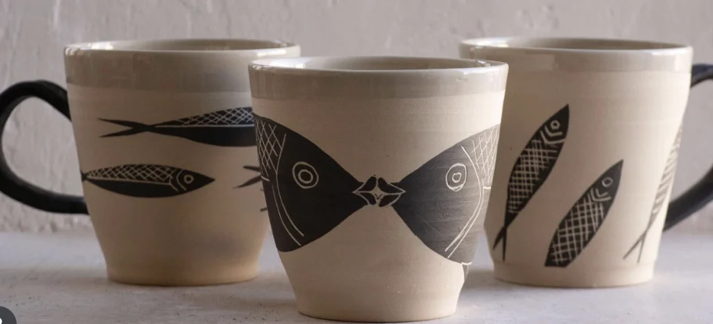 Look at the cute little fishies. i’m obsessed with the simple black-and-white design. These are perf for sipping my morning tea. I think a class in Beginner Pottery is def on my list. They’re giving me inspo for my next art project. Like, I need to learn how to make something this chic, right?.
